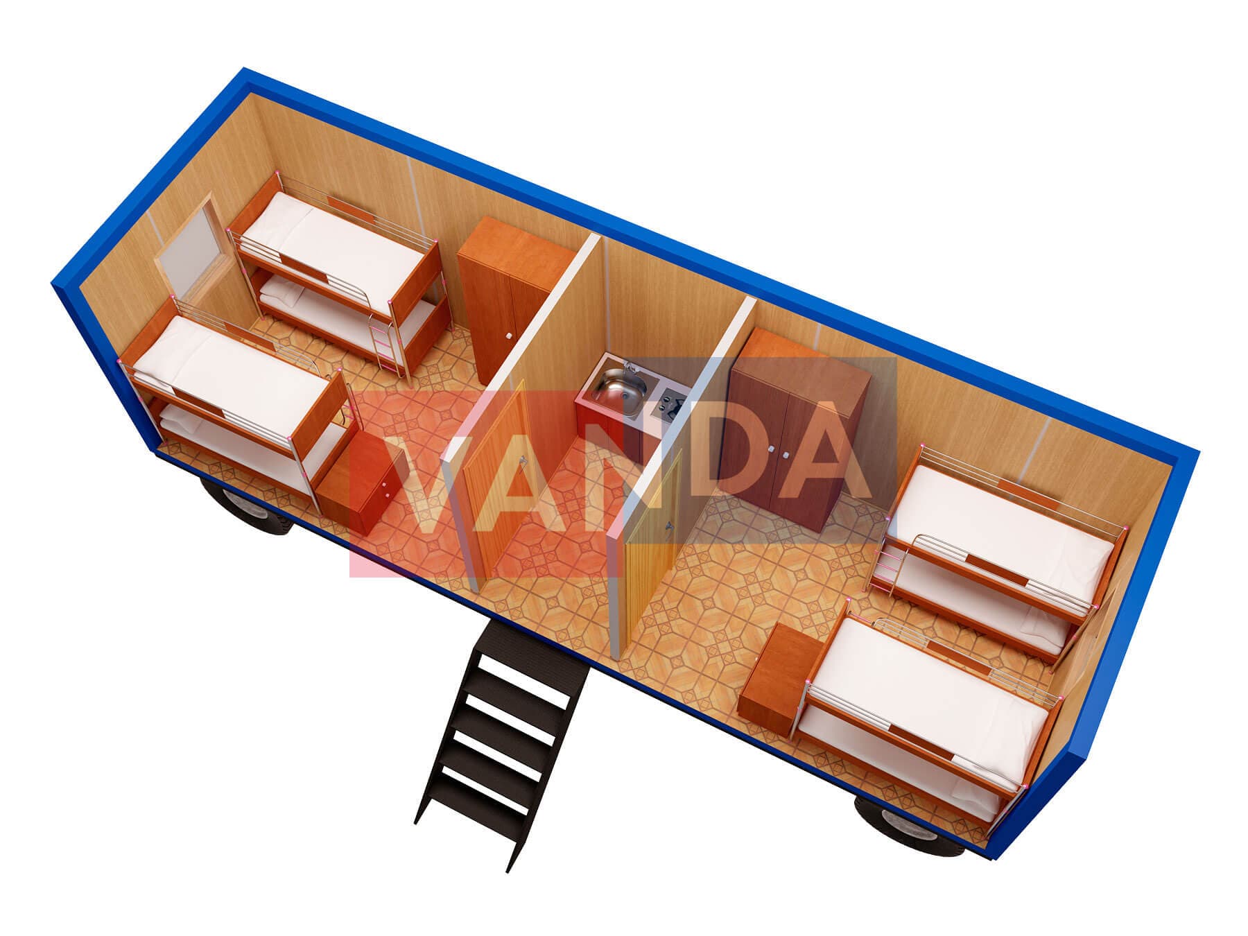 Мы сами изготавливаем вагончик на шасси 8,0 x 2,4, общей площадью 19.2 квадратных метров, имеющий наиболее доступную цену в нашем каталоге, и предлагающий широчайшие возможности для модернизаций. Простое решение с минимальными затратами.