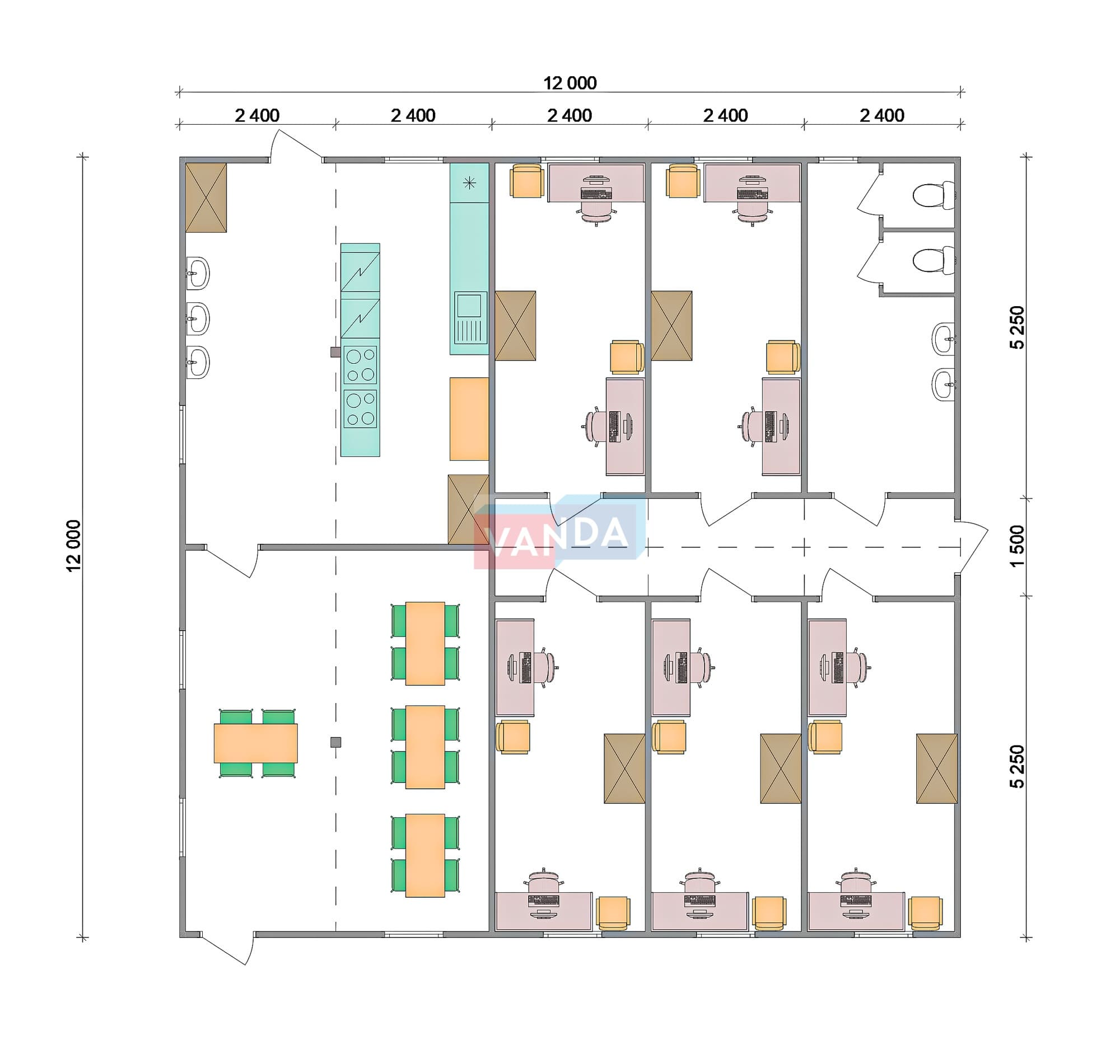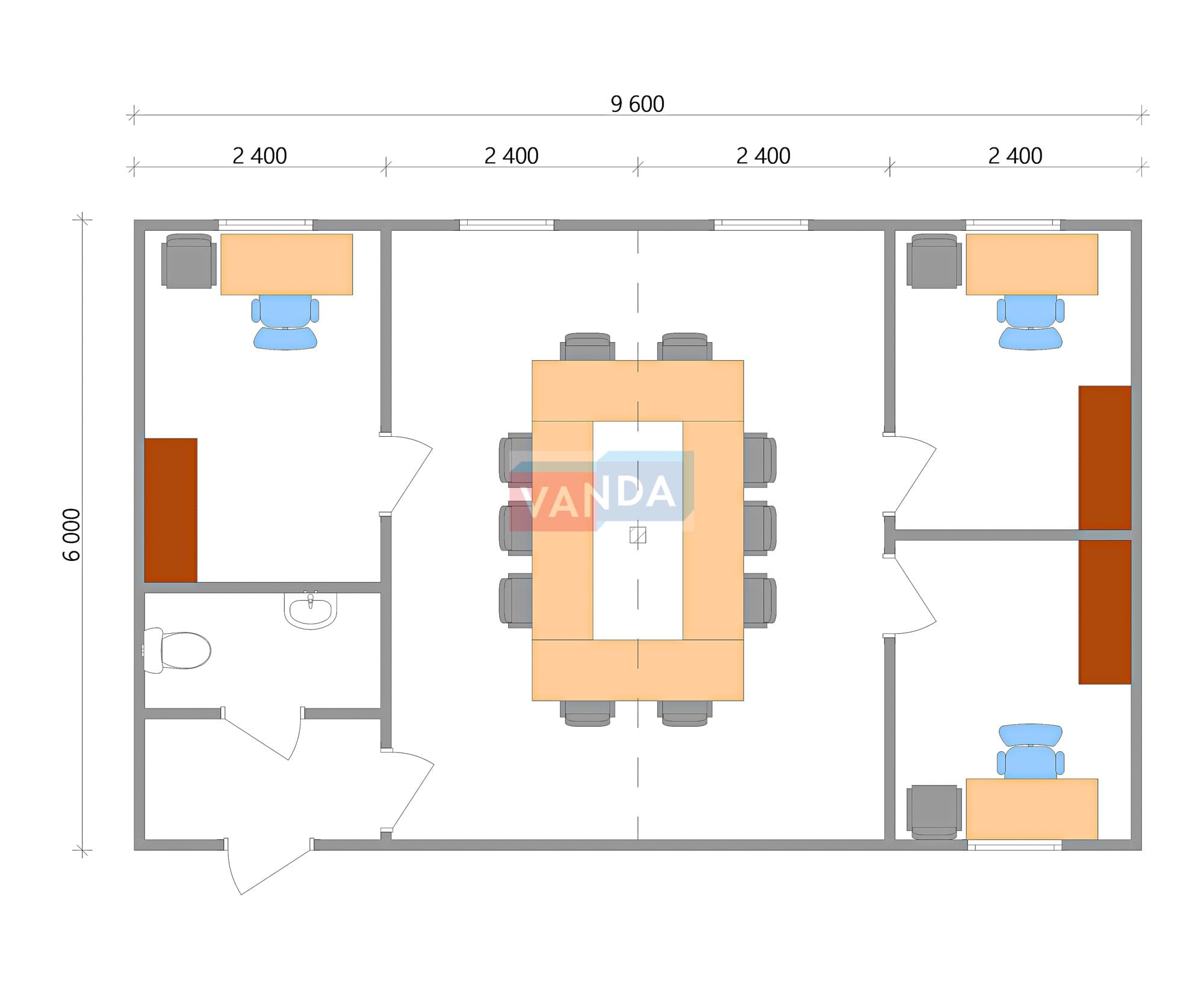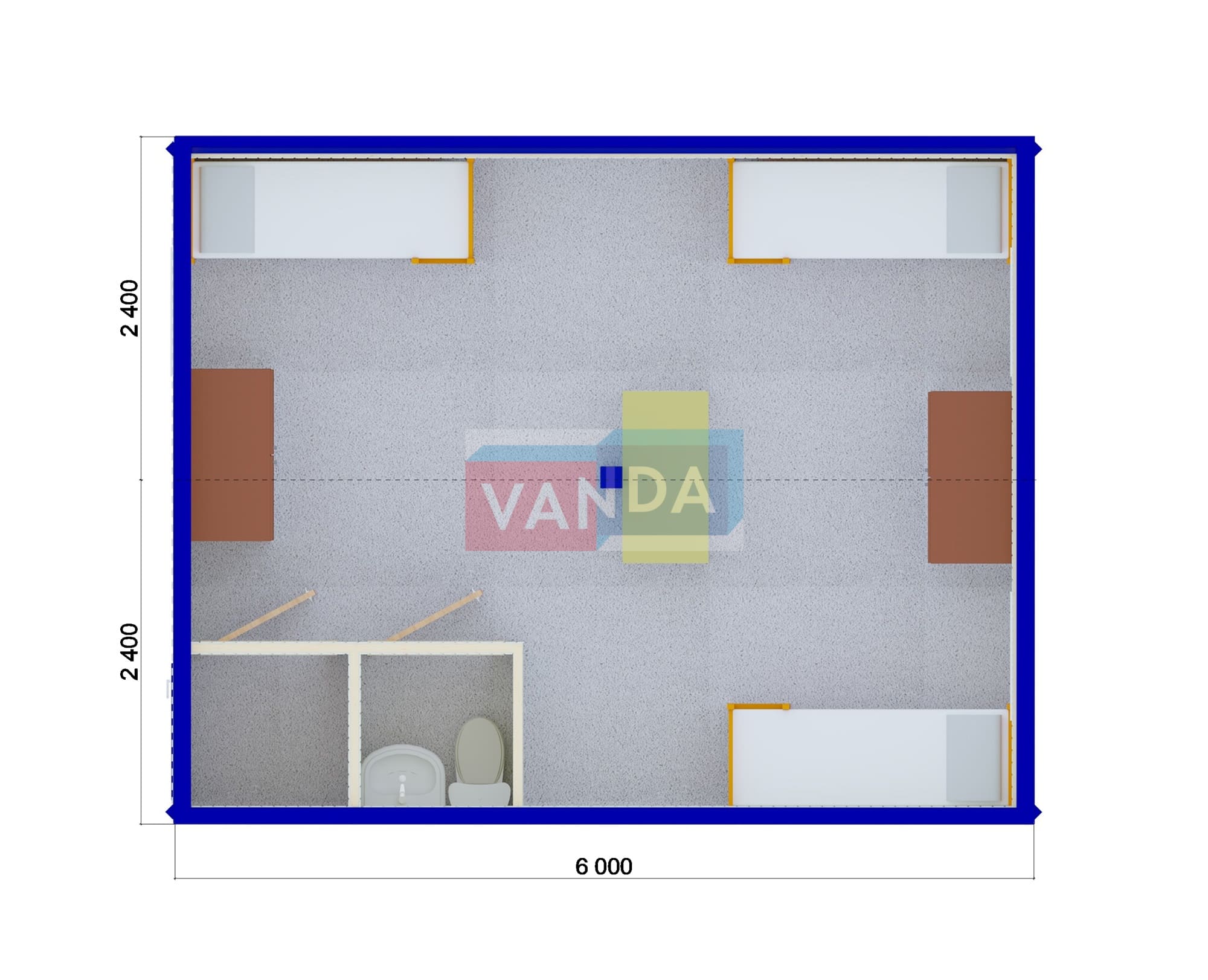 Модульная бытовка с плоской крышей 7.2x6.0 7.2x6.0 43.2 OSB 9 мм. Оцинкованный профлист 650 000 р. Уточняйте у менеджера