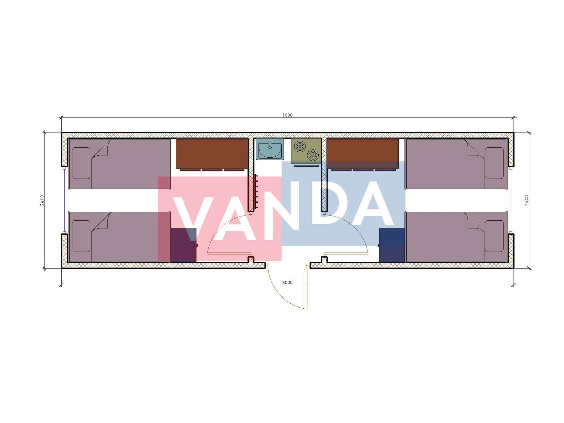 Проект вахтового посёлка 14.0х57,6 14x57.6 806.4 OSB 9 мм. Оцинкованный профлист 20 700 000 р. Уточняйте у менеджера
